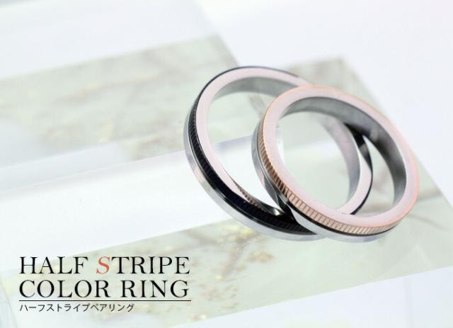 ■商品名:有料刻印可能 ペア販売 ハーフストライプカラーペアリング 指輪 ペア ステンレスリング