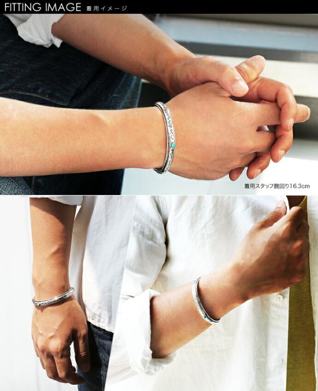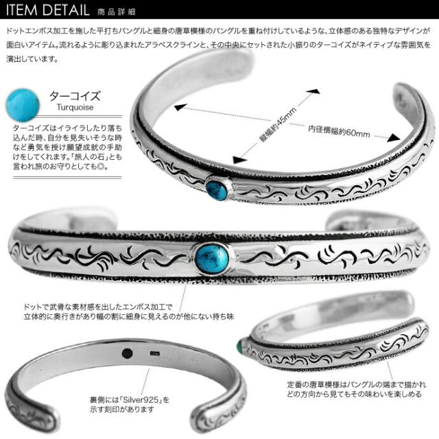 ■商品名:エンボスサイドターコイズバングル メンズ シルバー925 アクセサリー シルバーブレスレット