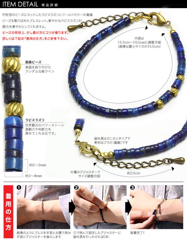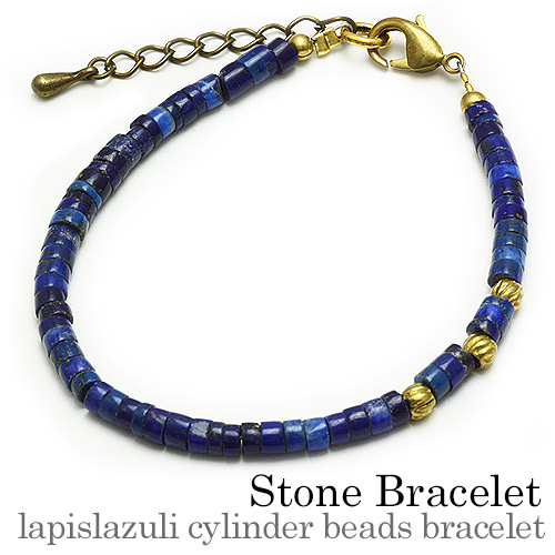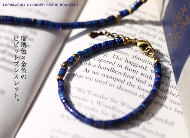 ■商品名:ラピスラズリシリンダービーズブレスレット メンズ 天然石 瑠璃 真鍮