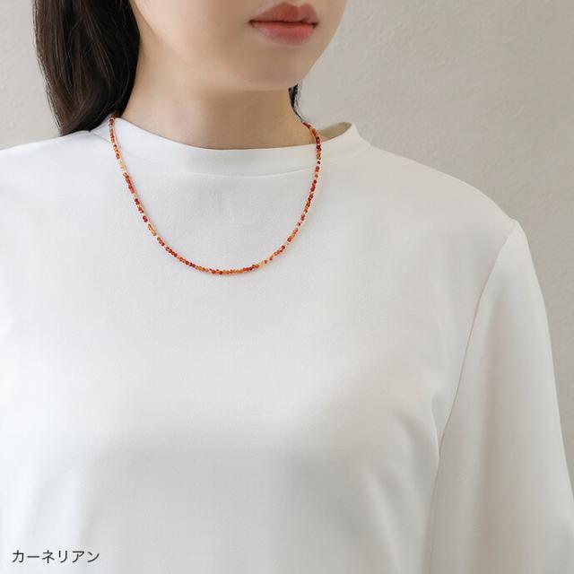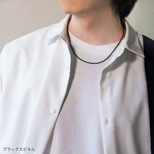 アジャスターで長さ調整可能なので服装に合わせて、男性も女性も着用いただけます。単品で着けるのはもちろん、ペンダントを通したり他のネックレスと重ね着けしたりと様々なアレンジが可能。気分やコーデに合わせて着ける色を変えるのも楽しい、首元に色どりと輝きをプラスしてくれるアイテムです。