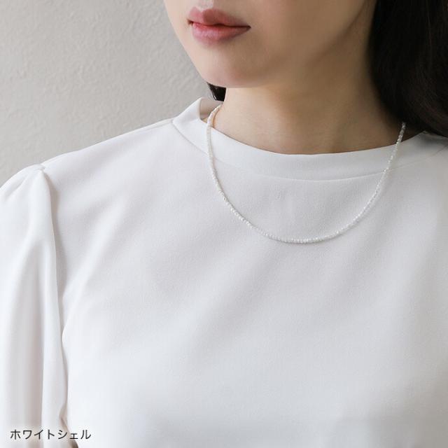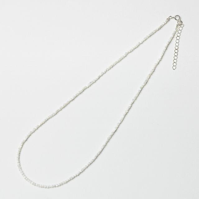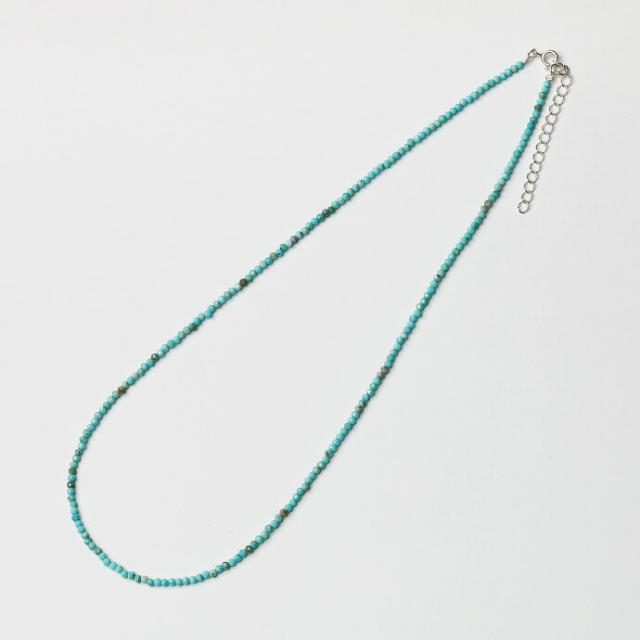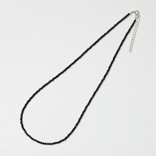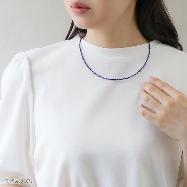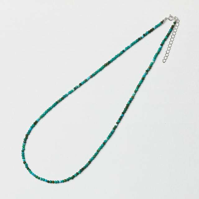 多面カットが施された小さめの天然石を使用したネックレスです。存在感がありつつも主張しすぎない細め幅で、サラッと着けるだけでいつものコーデを爽やかな印象に。