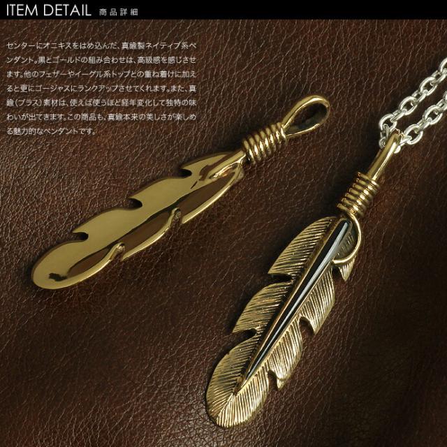 ■商品名:ゴールドブラスネイティブフェザーペンダントF (トップのみ) ネックレス メンズ インディアンジュエリー系 ウイング フェザー 羽 翼 ブラス 真鍮