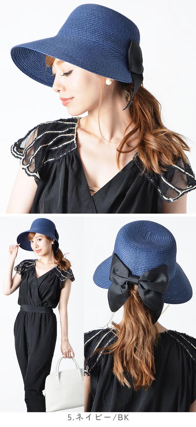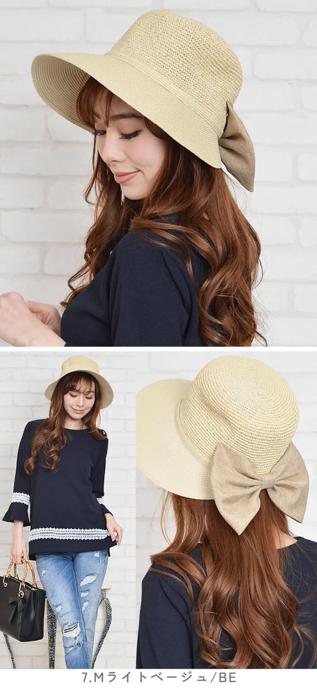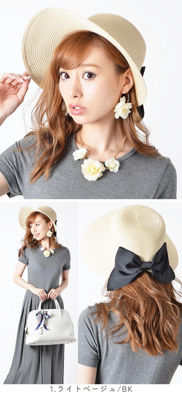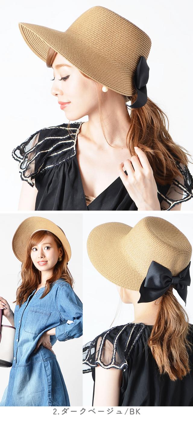 帽子 レディース 夏 ハット 宅配便配送 女優帽 リゾートハット つば広ハット キャペリーヌ 女優 帽 つば広 帽子 UVケア 麦わら ストローハット リボン バックリボン&シンプルリボンスリットポニーストローハット カービーズ