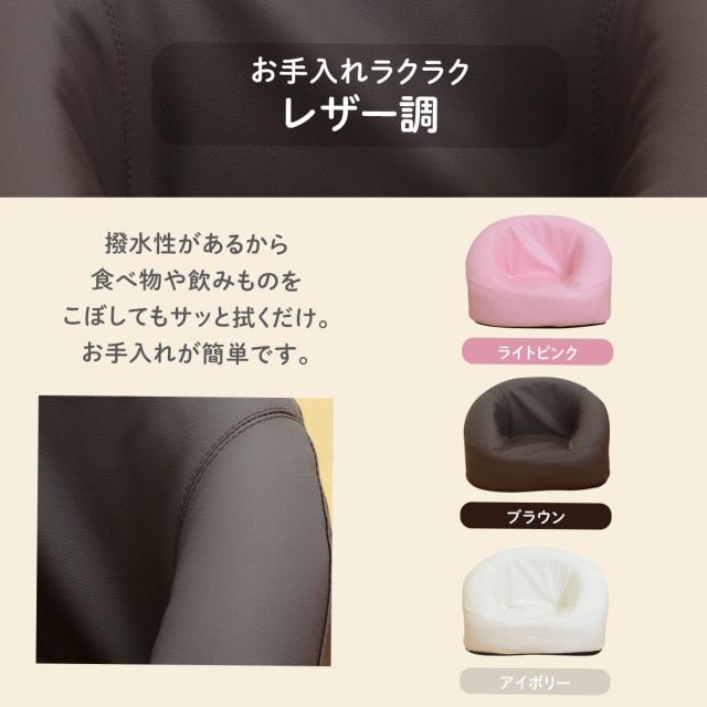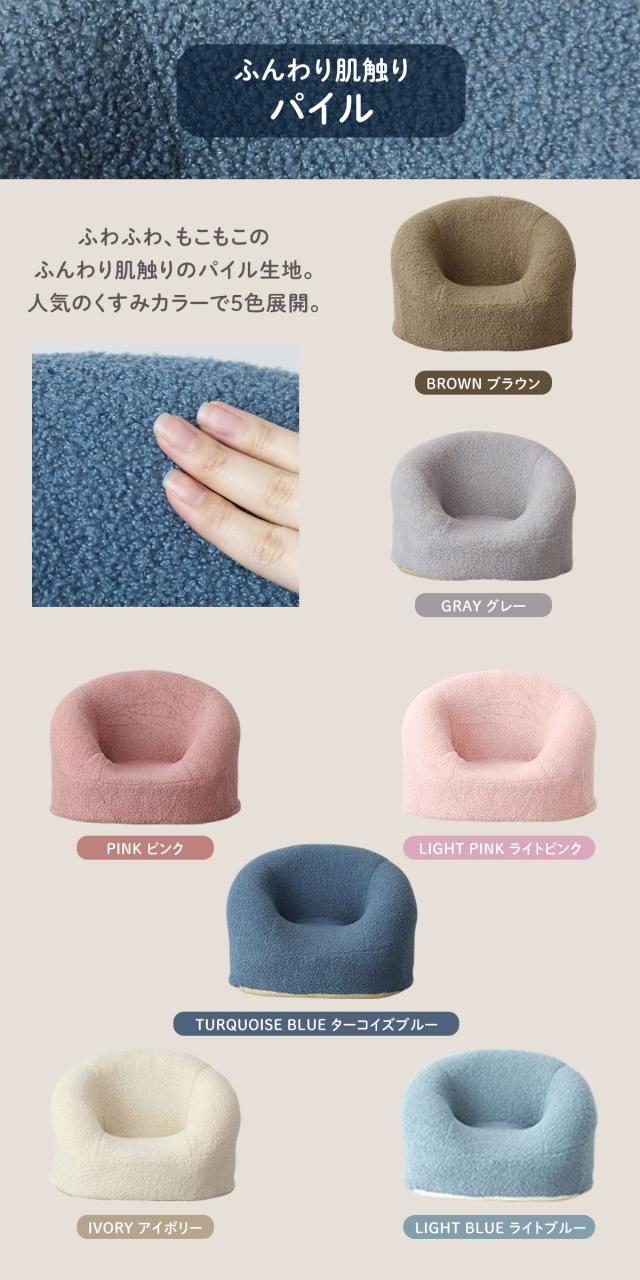 お手入れが簡単なレザー調は3色、やさしい肌触りのパイル生地は人気のくすみカラーを中心に7色展開。ナチュラルなインテリアになじむ色味を揃えました。ブラウンやアイボリーは定番として使いやすく、明るいカラーはお部屋のアクセントに。兄弟で色違いにしたり、写真映えを楽しめるのも魅力です。