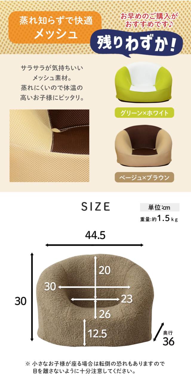 コロンと丸みのあるデザインで、小さなお子様にも安心して使える設計。やさしい曲線が体を包み込み、見た目のかわいさとくつろぎやすさを両立しています。北欧風やナチュラルなど幅広いインテリアに自然となじみ、お部屋に温もりをプラスします。