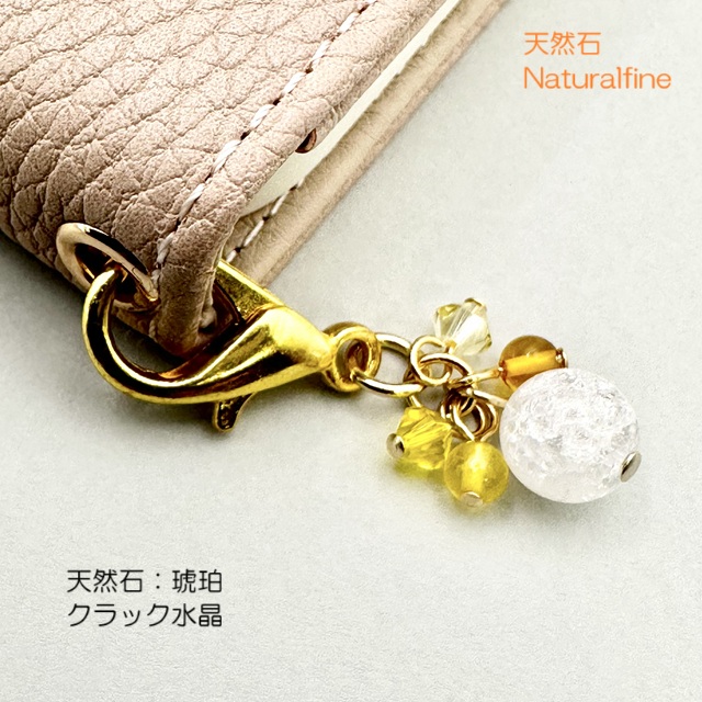 1つだけ願いが叶う?!というパワーストーンのクラック水晶 と天然石琥珀(アンバー)をつけ前のデザインよりパワーアップしました!