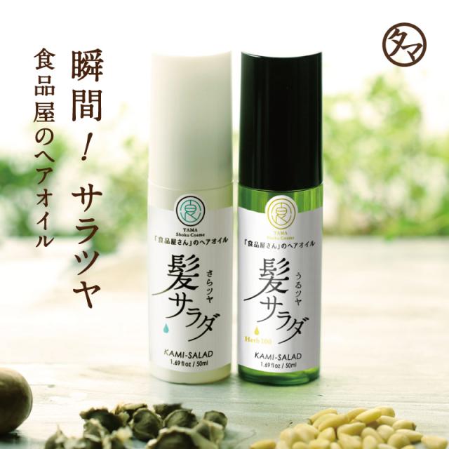 浸透力が高く、ベタつきの少ないアルガンオイル、つるつるに仕上げるマカデミアナッツ油など、髪に魔法をかける7種類の天然ハーブオイルを贅沢に使用した、食品屋さんのヘアオイル「髪サラダ」です。