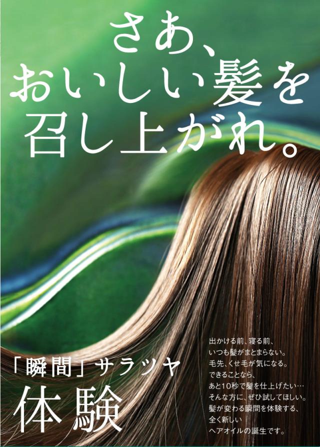 さらっ、つやっ、ひとぬり10秒。たった1滴で髪が変わる!全く新しいヘアオイル。