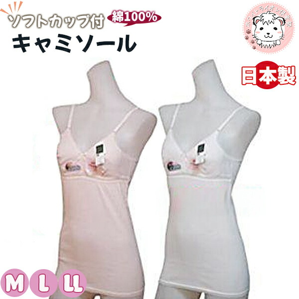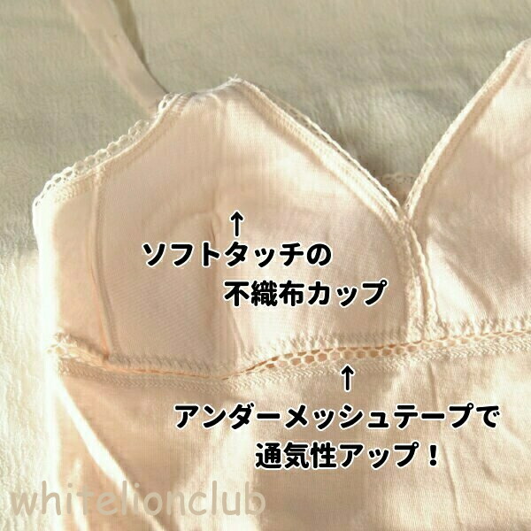 ソフトカップ付 ブラキャミソール アンダーメッシュ 綿100% 吊り型キャミソール M/L/LL | ブラトップ レディース 日清紡 アジャスター付き ブラキャミ 日本製