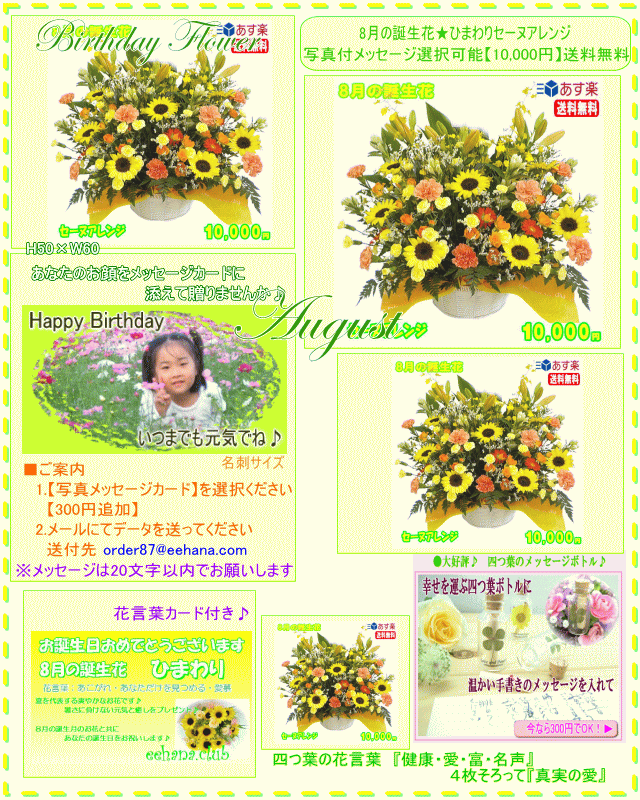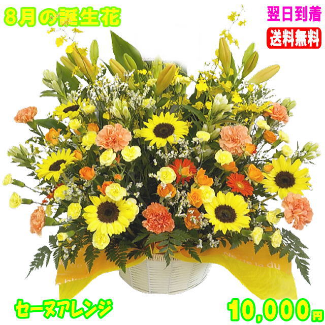 8月の誕生花ひまわりセーヌアレンジ10,000円【送料無料】ネット特価!