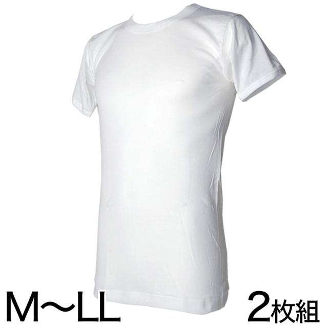 インナー メンズ 半袖 綿100% クルーネック 2枚組 M〜LL (肌着 下着 シャツ 丸首 男性 紳士 白 無地 アンダーウェア 抗菌防臭 コットン M L LL)