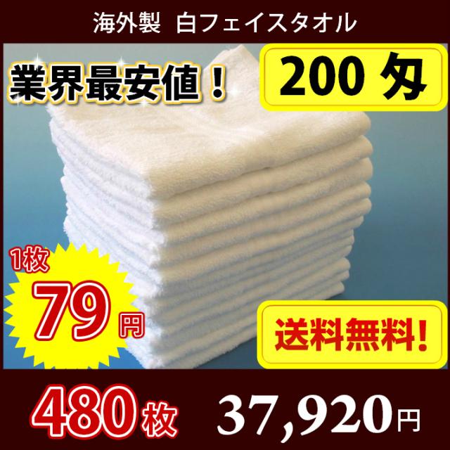 【送料無料】業界最安値 1枚79円 480枚セット タオル 白タオル 普通のタオル 外国製 200匁 総パイル フェイスタオル 業務用タオル 雑巾としても