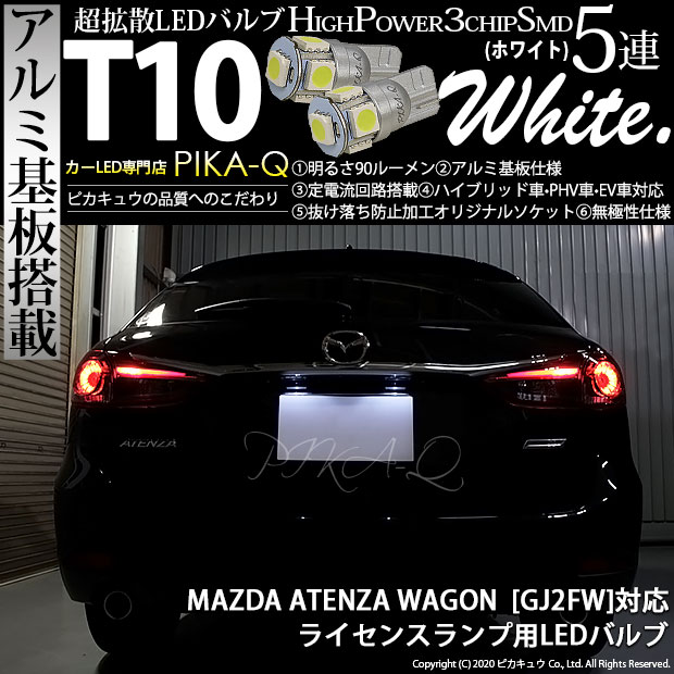 | ピカキュウ,LED専門店,LEDバルブ,LED,SMD,T10,W5W,T10 HIGH POWER 3CHIP SMD 5連ウェッジシングル球,アルミ基板,90lm,長持ち,ホワイト,ライセンスランプ,番号灯,マツダ,MAZDA,ATENZA,アテンザワゴン,GJ系,gj2fw |