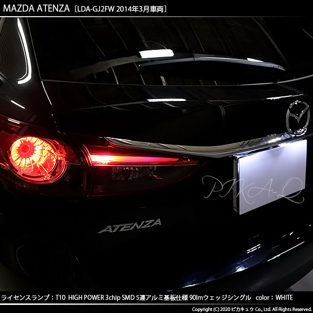 | マツダアテンザワゴン[GJ系 前期モデル]対応 ライセンスランプ用LEDバルブ T10 HIGH POWER 3CHIP SMD 5連ウェッジシングル球 明るさ90ルーメン アルミ基板搭載 LEDカラー:ホワイト 1セット2個入り | ||||