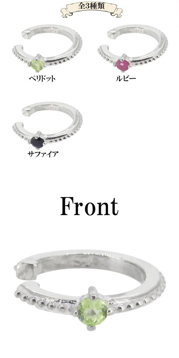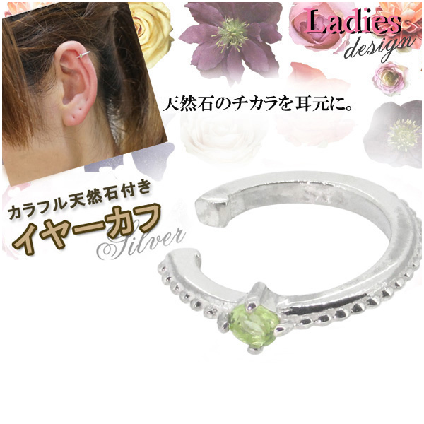 ペリドット ミル打ち シルバー イヤーカフ(1P片耳)イヤーカフス/シルバー925/イヤーカフ レディース/シンプル/誕生石 天然石/8月