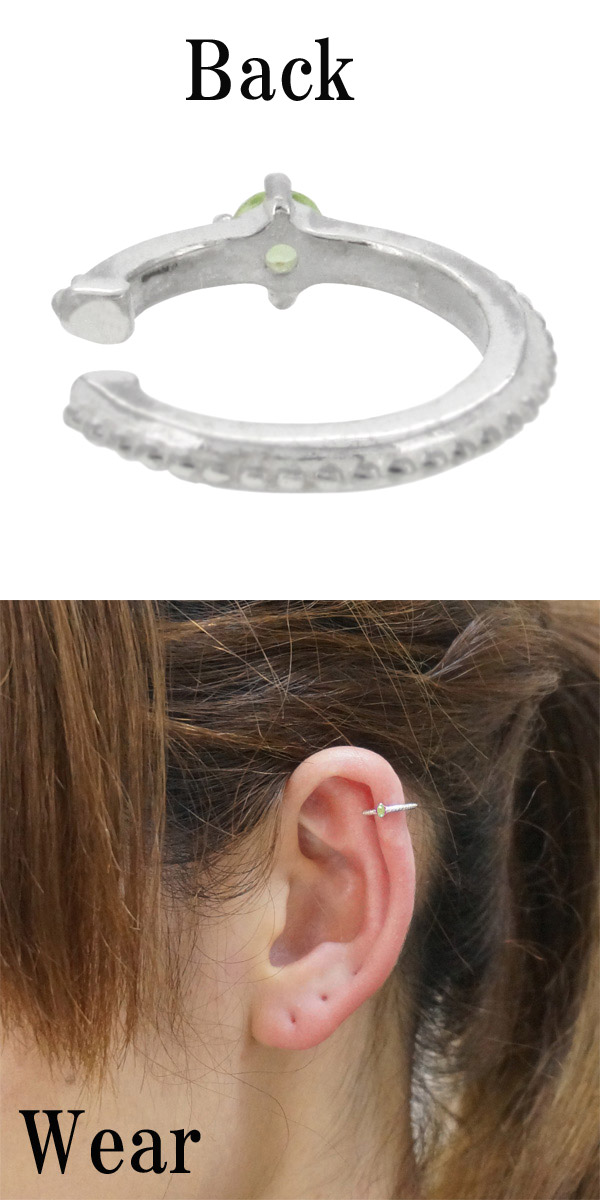 細身のミル打ちデザインにペリドットが1粒留められたシルバーイヤーカフです。