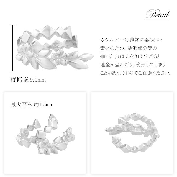※シルバーは非常に柔らかい素材のため、装飾部分等の細い部分は力を加えすぎると地金が歪んだり、変形してしまうことがありますのでご注意ください。