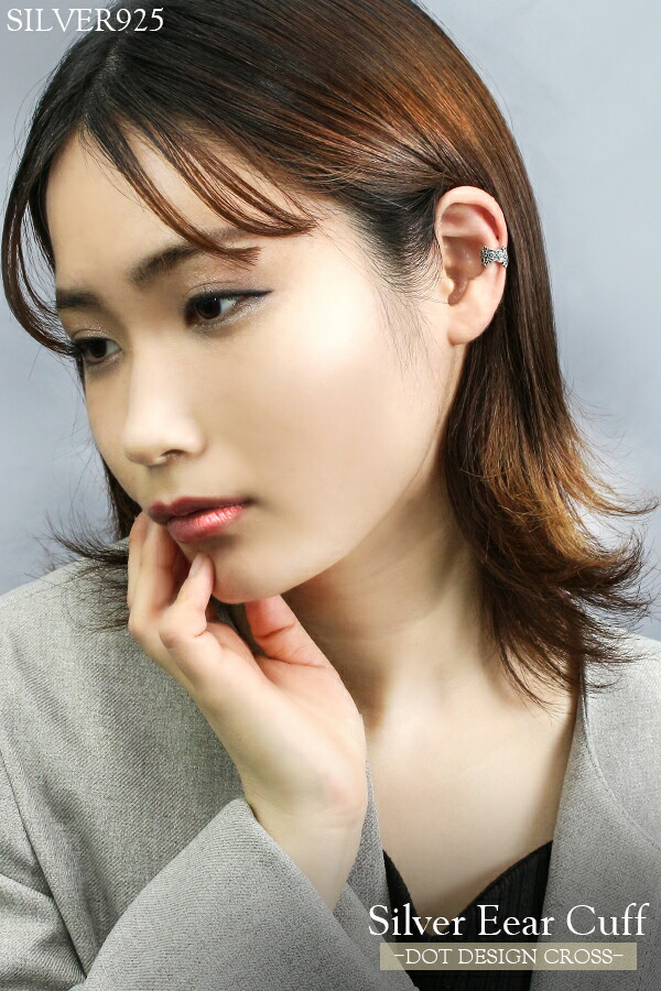 ドットデザイン クロス シルバー イヤーカフ(1P/片耳用)