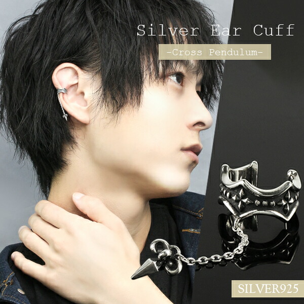 クロス ペンデュラム シルバー イヤーカフ 1P 片耳用 シルバー925 シルバーアクセサリー メンズ ハード ゴシック パンク ロック かっこいい