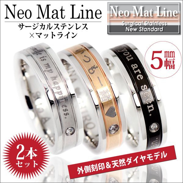 ペアリング 送料無料 刻印無料 ダイヤモンド ネオマットライン リング ステンレス 5mm 幅 指輪 サージカルステンレス 宅配便