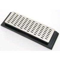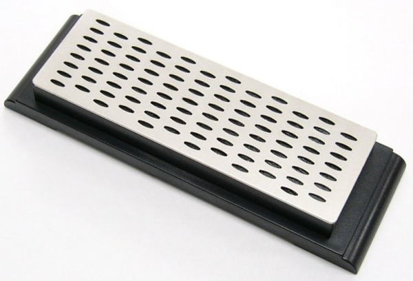 ダイヤモンドシャープナーに新機能登場。表面に施したディンプルが摩擦を避け、刃を傷めません。また、研がれた包丁の金属粉がディンプルに落ちるためきれいな研ぎ上がりを作ります。包丁だけでなく、ポケットナイフやハサミなども容易に研げます。ダイヤモンドですので、セラミック包丁も研げます。【商品名】ダイヤモンド刃物用シャープナー・台付【材質】シャープナー部:工業用ダイヤモンド/スチール 台:ABS樹脂 滑り止め:ゴム【商品サイズ】W225×D74×H30mm【商品重量】437g【個装サイズ】W81×D233×H35mm/485g【原産国】中国