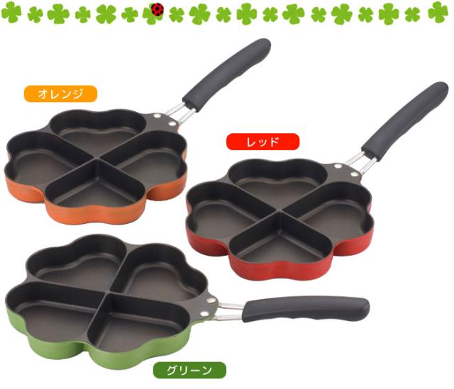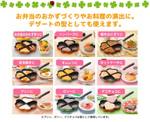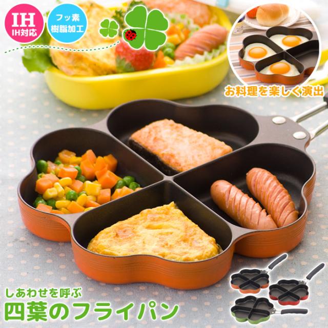 【値下げ】日本製 IH対応 四葉フライパン オレンジ フライパン/仕切り/お弁当/弁当/作り/型/ハート型/ハート/朝食/IH/IH対応