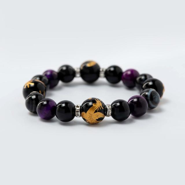 風水四神獣 オニキス パープルタイガーアイ パワーストーンブレスレット 神社でお清め・お祓い済み 高級桐箱付き/守護石/お守り/祈願済み