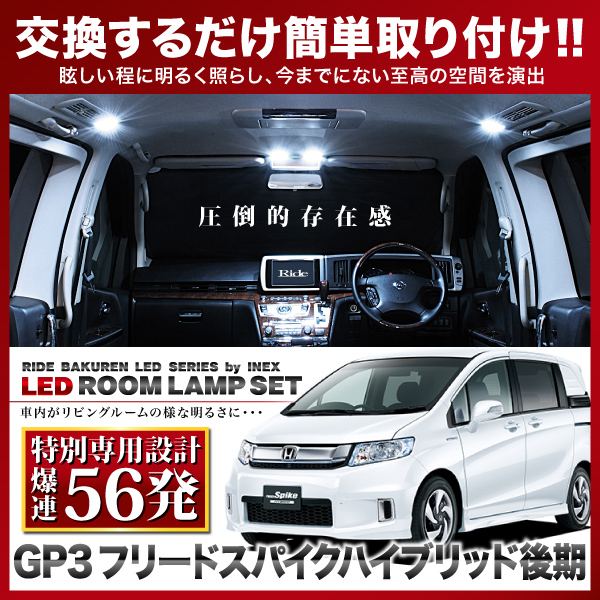 【専用基板】フリードスパイクハイブリッド 後期 カーゴスポット無 RIDE LEDルームランプ 56発 4点 GP3 [H26.4-H28.9]