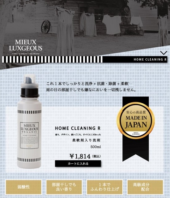 ティーツリーなどの天然成分を配合で弱酸性のため赤ちゃんや小さなお子様のお洋服にも安心。