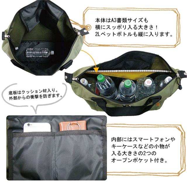 【Aタイプ(8578)】 ちょっとした旅行などに便利な大容量トートバッグ! 本体前面下部にあるハンドルをもつと肩への負担が軽減出来る工夫が◎ 持ち手の長さは調整可能なので、荷物の多いときは肩に掛けたりと2wayでご使用いただけます。 内側にはクッション材入り、外部からの衝撃を防ぎ荷物も安心です。 ■サイズ:約幅49×高さ40×奥行18cm ■ショルダー長さ:約30cm→最長約60cm ■素材:600デニールポリエステル ■仕様: [内側]オープンポケット×2 [外側]ファスナーポケット×2 ■重さ:約530g ■生産地:中国 ■カラー:ブラック、ネイビー、カーキ、グレー 【Bタイプ(8280)】 ロングセラー商品8578の後継版になります。 プラスチック部分がなくなったことにより、持つときに痛みがなく、より耐久性も増しました。 ■サイズ:幅49×高さ40×奥行18cm ■素材:600デニールポリエステル ■仕様: [内側]オープンポケット×2 [外側]ファスナーポケット×2 ■重さ:約522g ■生産地:中国 ■カラー:ブラック、ネイビー、カーキ <注意事項> ※上部(メインファスナー周辺)に関して 幅に変更はありませんが、マチは構造上底部分よりも小さいです。→約6cm その為、トートバッグ本体よりもサイズが小さいものでも入れることが出来ないものもございますのでご注意ください。 ※商品写真はできる限り現品を再現するよう心掛けておりますが、若干差異が生じる場合がございます。予めご了承くださいませ。 ※タグの仕様(デザイン)が入荷時期により変更する場合がございます。予めご了承ください。 ※モデル着用写真は屋内外での撮影の為、光の影響で実際のカラーとは異なる場合がございます。 ※サイズは平置きにしてメジャーによる実寸の為、若干の誤差がでる場合がございます。予めご了承くださいませ。 ※後継版のBタイプ(8280)にはサイズ調節機能はございません。 【2402】 |