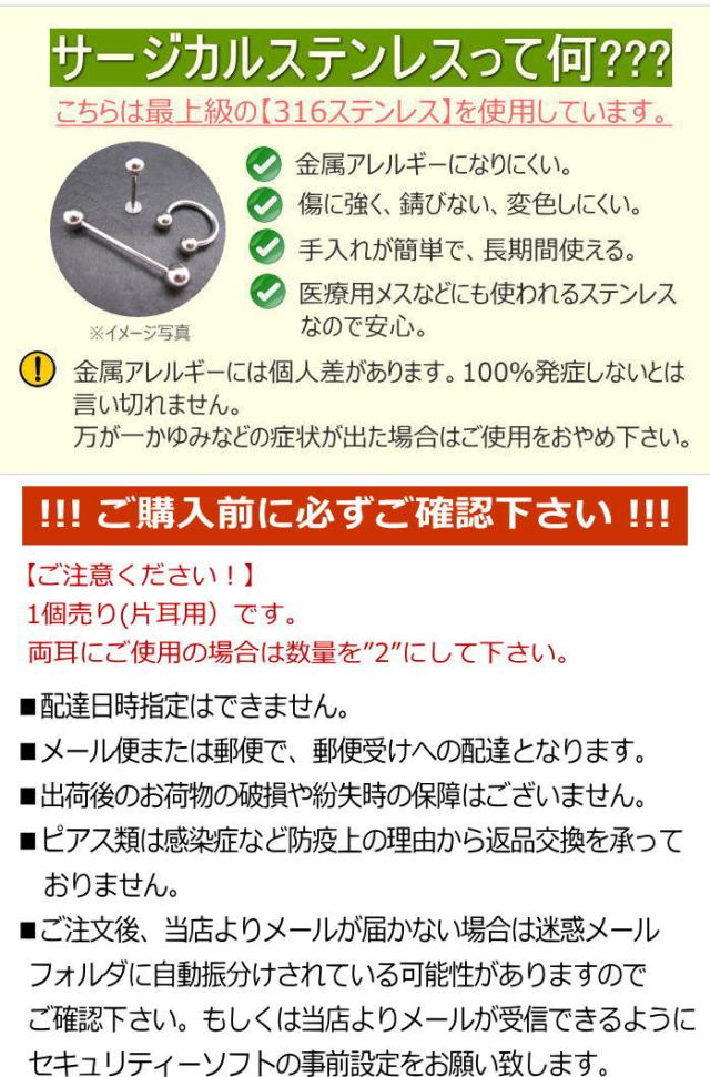 ファーストピアス 16ゲージ アレルギーフリー サージカルステンレス 片売り 1-149-150-151-161-162-163-166-167-168