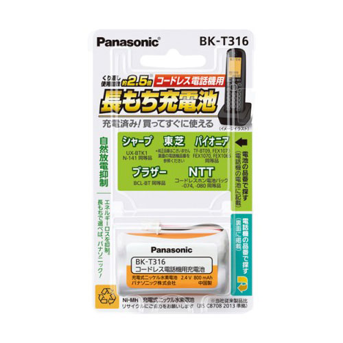 パナソニック BK-T316 充電式ニッケル水素電池 2.4VPanasonic HHR-T316の後継品[BKT316] 返品種別A