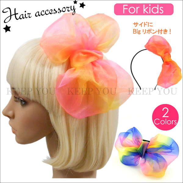 カチューシャ 子供用 ミックスカラー BIGリボン キッズ ヘアアクセサリー【カチューシャ KIDS 子供用 ガールズ レディース ダンス 発表会 入学 入園 ヘアーアクセサリー コスプレ ロリータ イベント パーティー】hair-acc-57 ┃