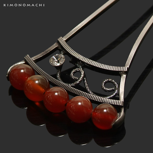 天然石 かんざし「ブラウンレッド」 簪 和装 和服 (3837-1)<H>ss2506wkk10