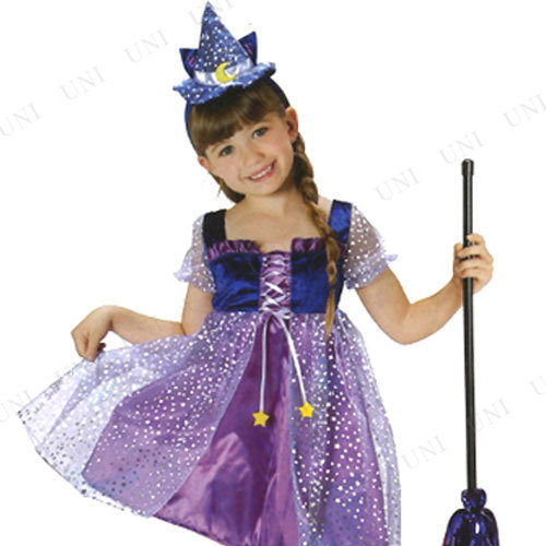 | 商品説明 | パープルカラーがかわいい子ども用魔女コスチュームです。透け感ある星のドット柄の生地がキュート!カチューシャ式の魔女帽子には小さなネコ耳付き。お子様のハロウィンパーティーやイベントでの仮装、コスプレ用にどうぞ ※ホウキ、タイツ、靴は付属しておりません |