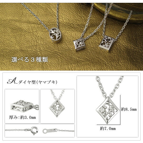 選べる3種類 透かし レリーフ 天然ダイヤ シルバーネックレス シルバー925 ネックレス ダイヤモンド アラベスク 植物 草 唐草 花 ツタ 百合 ユリ 小花