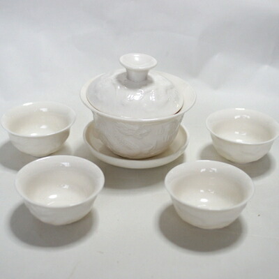 蓋碗・茶杯(浮彫龍)・茶器セット