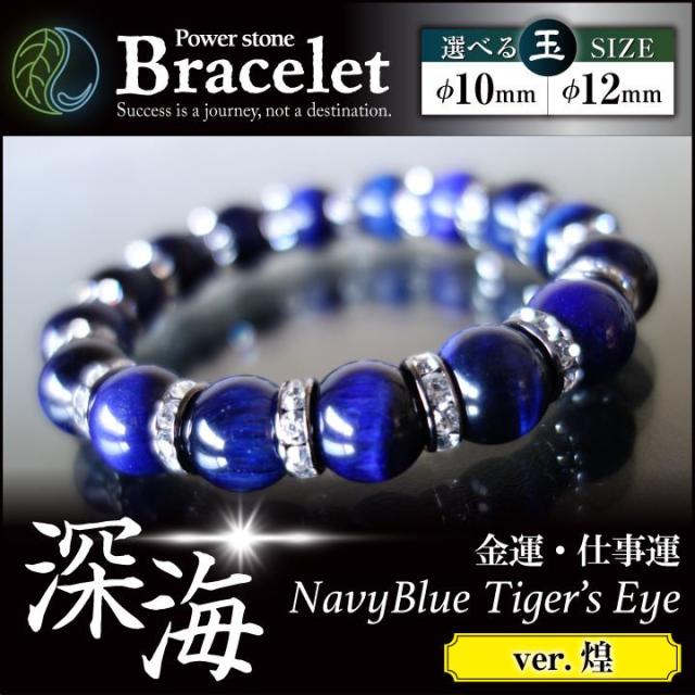 深海 煌 しんかい SHINKAI ミニさざれ石付 パワーストーン ブレスレット タイガーアイ ネイビー 青色 開運 幸運 お守り 金運 プレゼント オシャレ