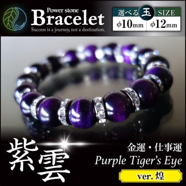 紫雲 煌 しうん SHIUN ミニさざれ石付 パワーストーン ブレスレット タイガーアイ パープル 紫雲 開運 幸運 お守り 金運 プレゼント オシャレ