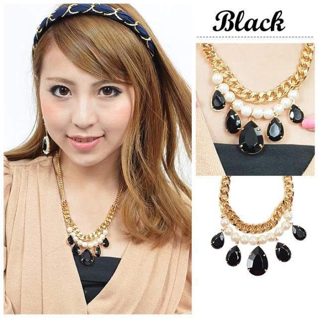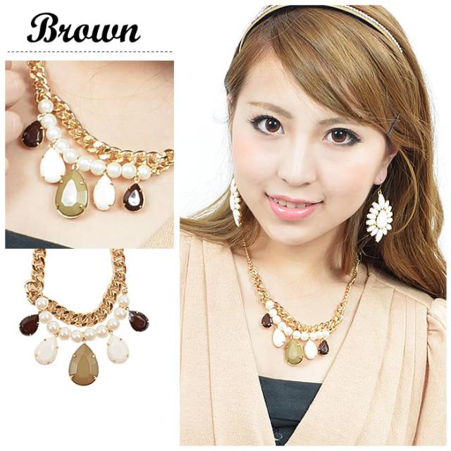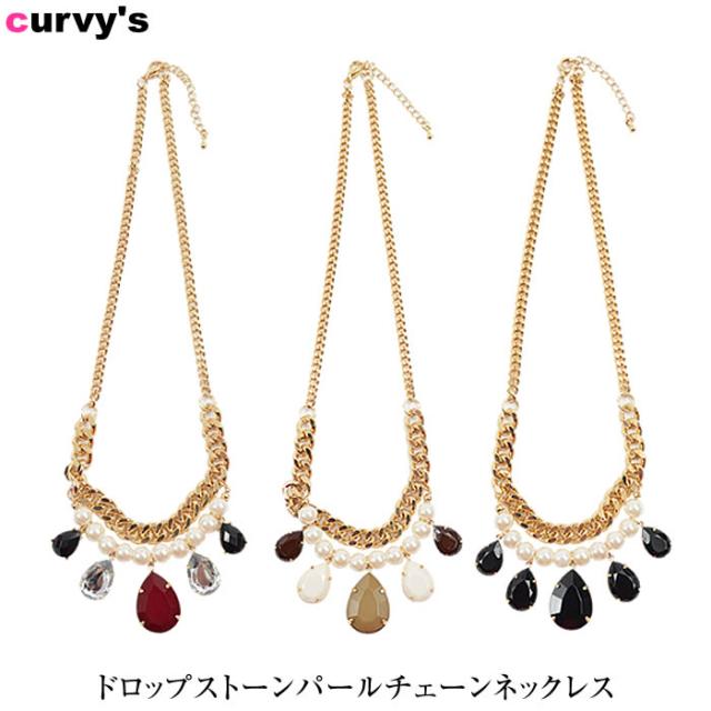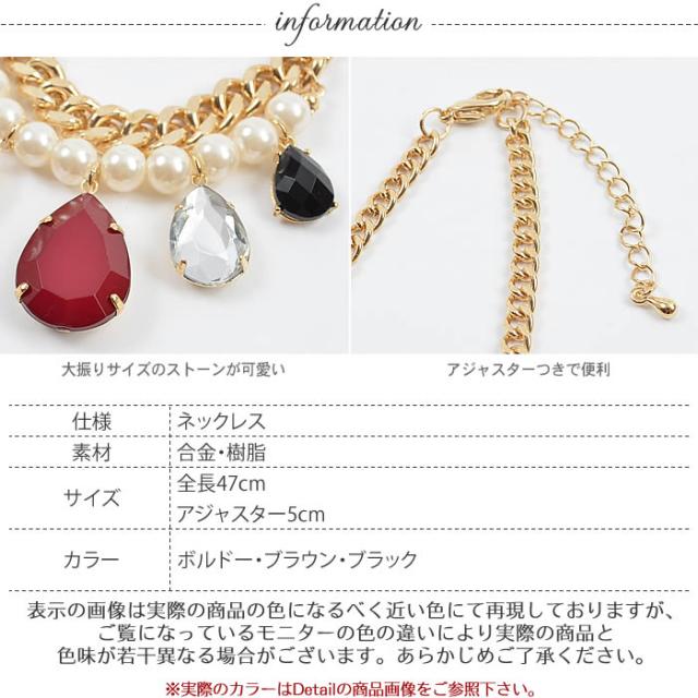 ネックレス レディース ゆうメール便送料無料ネックレス アクセサリー ジュエリー ストーン チェーン ドロップストーンパールチェーンネックレスカービーズ