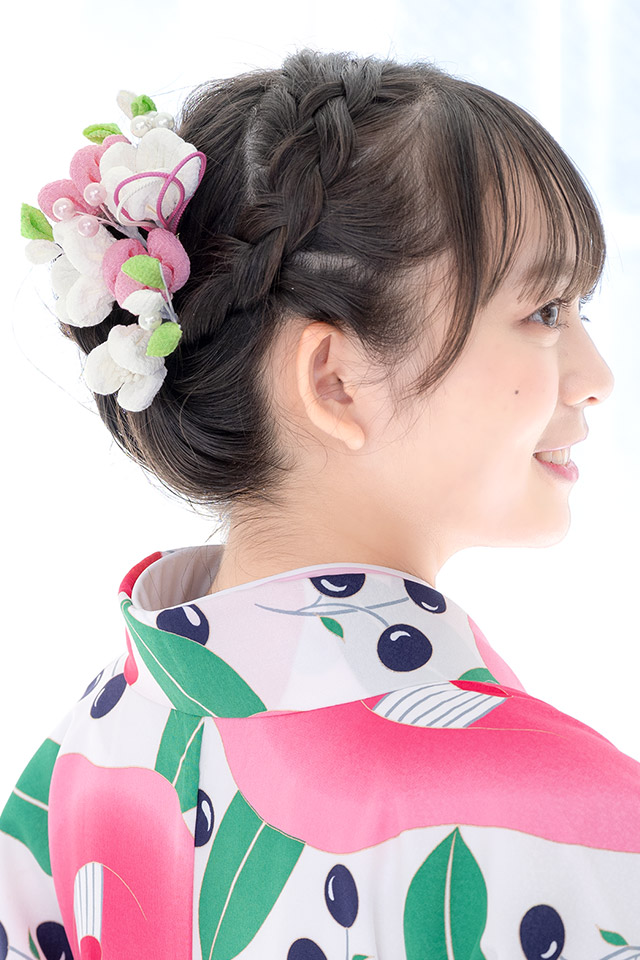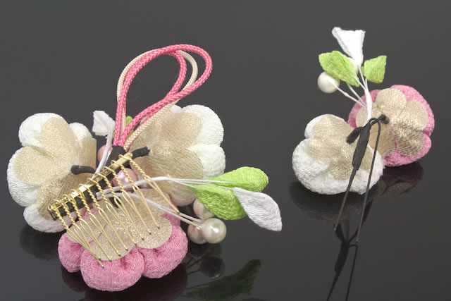 こちらはコーム式のものと、Uピンタイプの2点セットになっていますので、さまざまなヘアスタイルに合わせてお使いいただけます。成人式の振袖や、卒業式の袴など、華やかなお着物にオススメです。