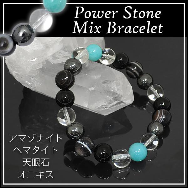 10mm 18cm アマゾナイト ヘマタイト 天眼石 オニキス ブレスレット (メンズMサイズ) 天然石 パワーストーン ブレスレッド メンズ 数珠ブレスレット