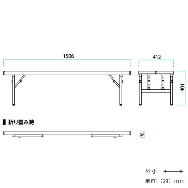 ![]() 折りたたみベンチ 背なしタイプ 180.6cm | ![]() 折りたたみベンチ 背なしタイプ 150.6cm |