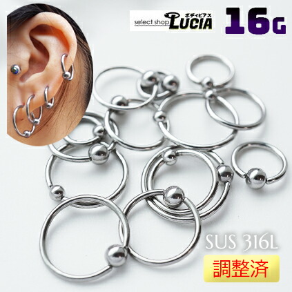 本日P2倍 調整済 16G ボディピアス リング ピアス キャプティブビーズリング CBR 金属アレルギー対応 316L 高品質 軟骨ピアス フープ ファーストピアス
