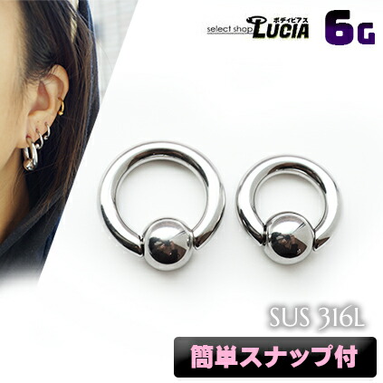 本日P2倍 簡単 ワンタッチ 6G ボディピアス リング ピアス キャプティブビーズリング CBR フープ つけっぱなし 金属アレルギー対応 316L 高品質 316L