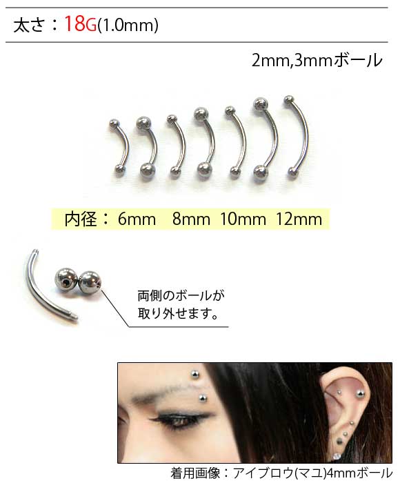 アイブロウ(眉)やへそピアスに最適な形状です。