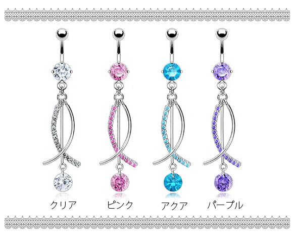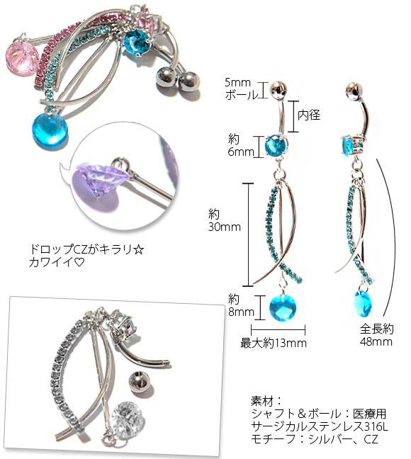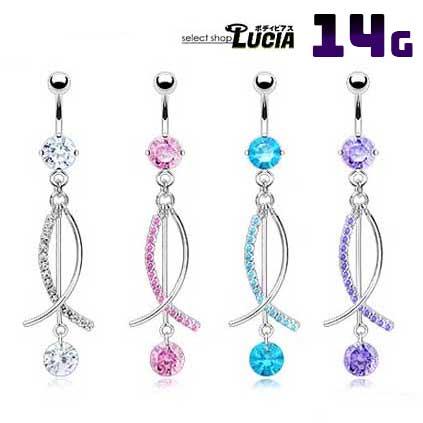 本日P2倍 14G ボディピアス ロングモチーフジルコニア へそピアス 金属アレルギー対応 316L 高品質 ステンレス