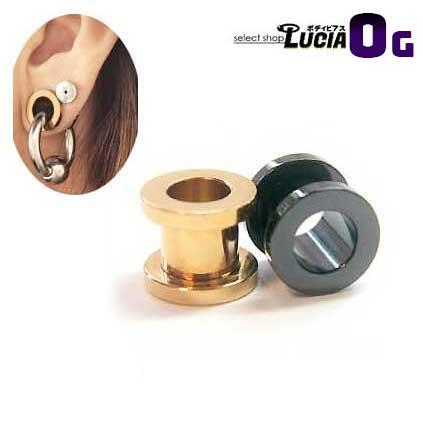 本日P2倍 0G ボディピアス ブラック ゴールド フレッシュトンネル アイレット プラグ カラー 金属アレルギー対応 316L 高品質 ステンレス 拡張
