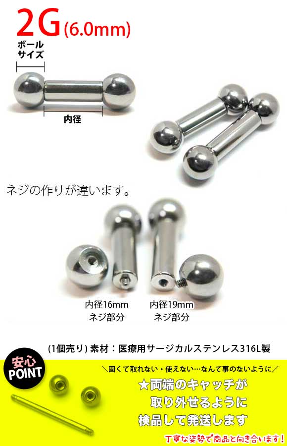 【全品P2倍】2G ボディピアス ストレートバーベル ピアス インターナル 舌ピアス 舌ピ つけっぱなし 金属アレルギー対応 316L 高品質 ステンレス
