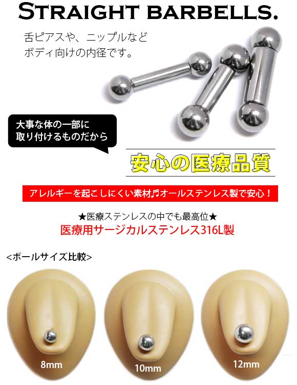 本日P2倍 0G ボディピアス ストレートバーベル ピアス インターナル 舌ピアス 舌ピ つけっぱなし 金属アレルギー対応 316L 高品質 ステンレス